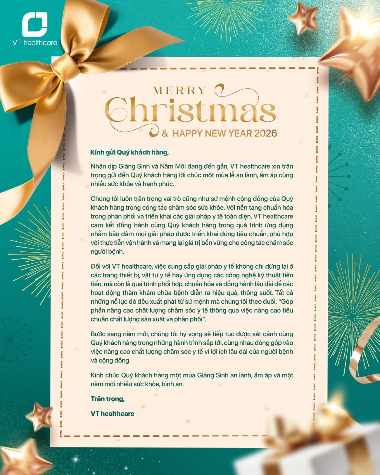 VT healthcare chúc mừng Giáng sinh và Năm mới 2026