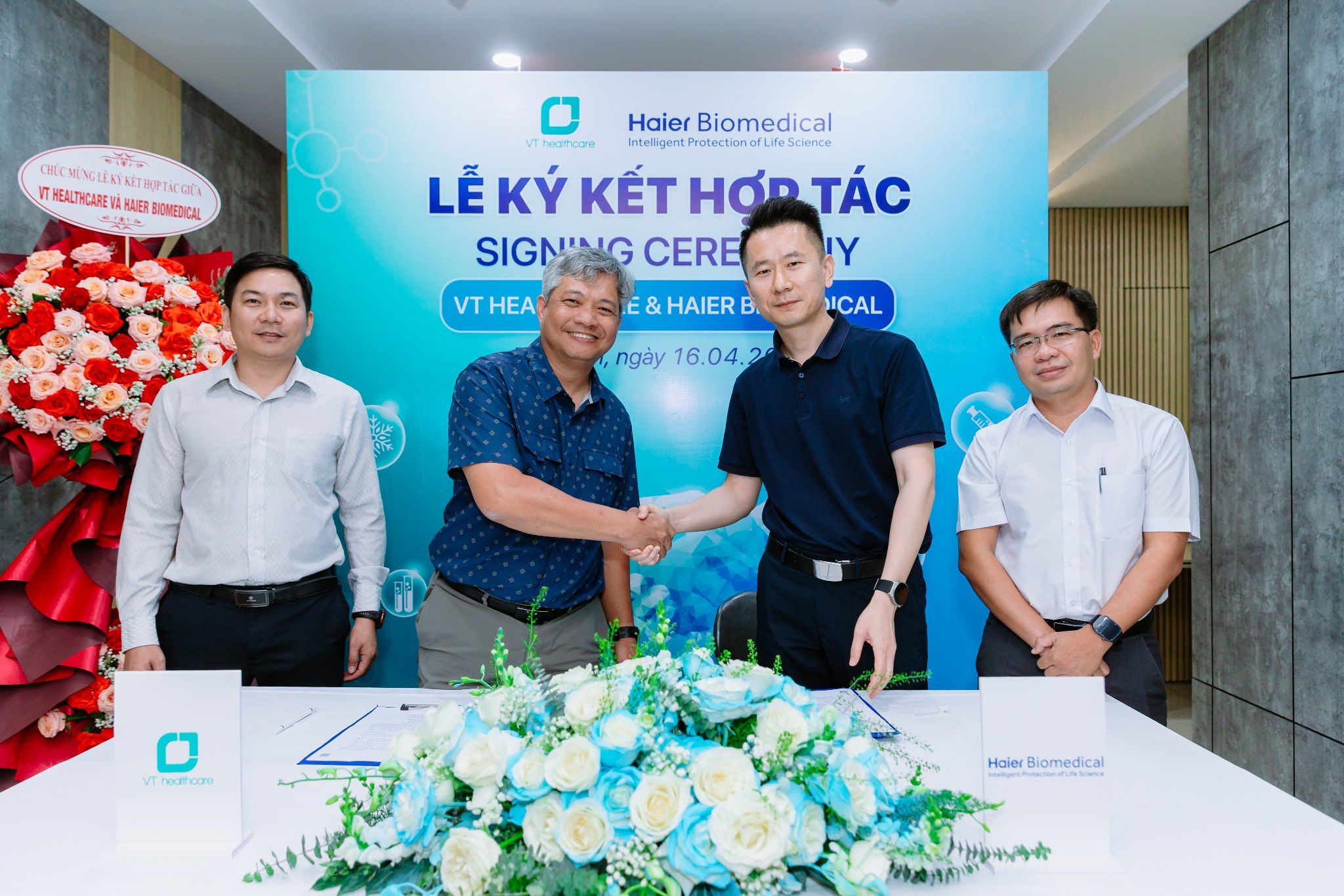 Đại diện hai đơn vị VT healthcare và Haier Biomedical tiến hành ký kết. Ảnh: VT healthcare