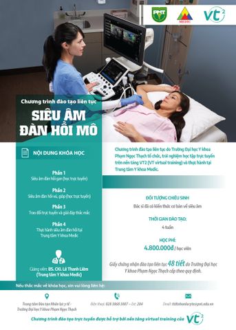 Khóa học do Trường Đại học Y khoa Phạm Ngọc Thạch phối hợp cùng Trung tâm Y khoa Medic tổ chức, với sự hỗ trợ của nền tảng học tập trực tuyến VT2 (VT healthcare). Chương trình sẽ tiếp tục chiêu sinh khóa tiếp theo trong thời gian tới.
