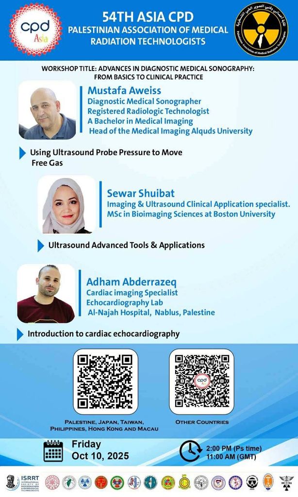 Chương trình Online Continuing Professional Development Platform for Asian Radiologic Technologist’s Societies (CPD ASIA) lần thứ 54 do Palestinian Association of Medical Radiation Technologists (PAMRT) phối hợp tổ chức cùng với Chi hội Kỹ thuật điện quang và Y học hạt nhân Việt Nam (VART), VT healthcare hân hạnh đồng hành tổ chức chương trình này.