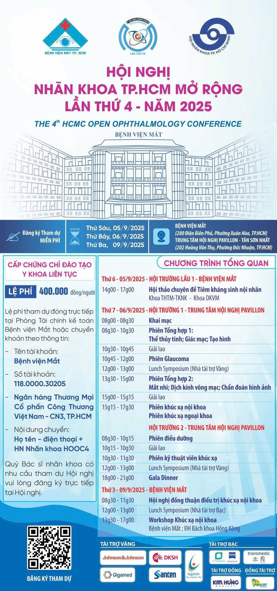 Đăng ký tham dự và hoàn tất đóng phí cấp CME trực tiếp tại cổng đăng ký của Bệnh viện Mắt tại đây