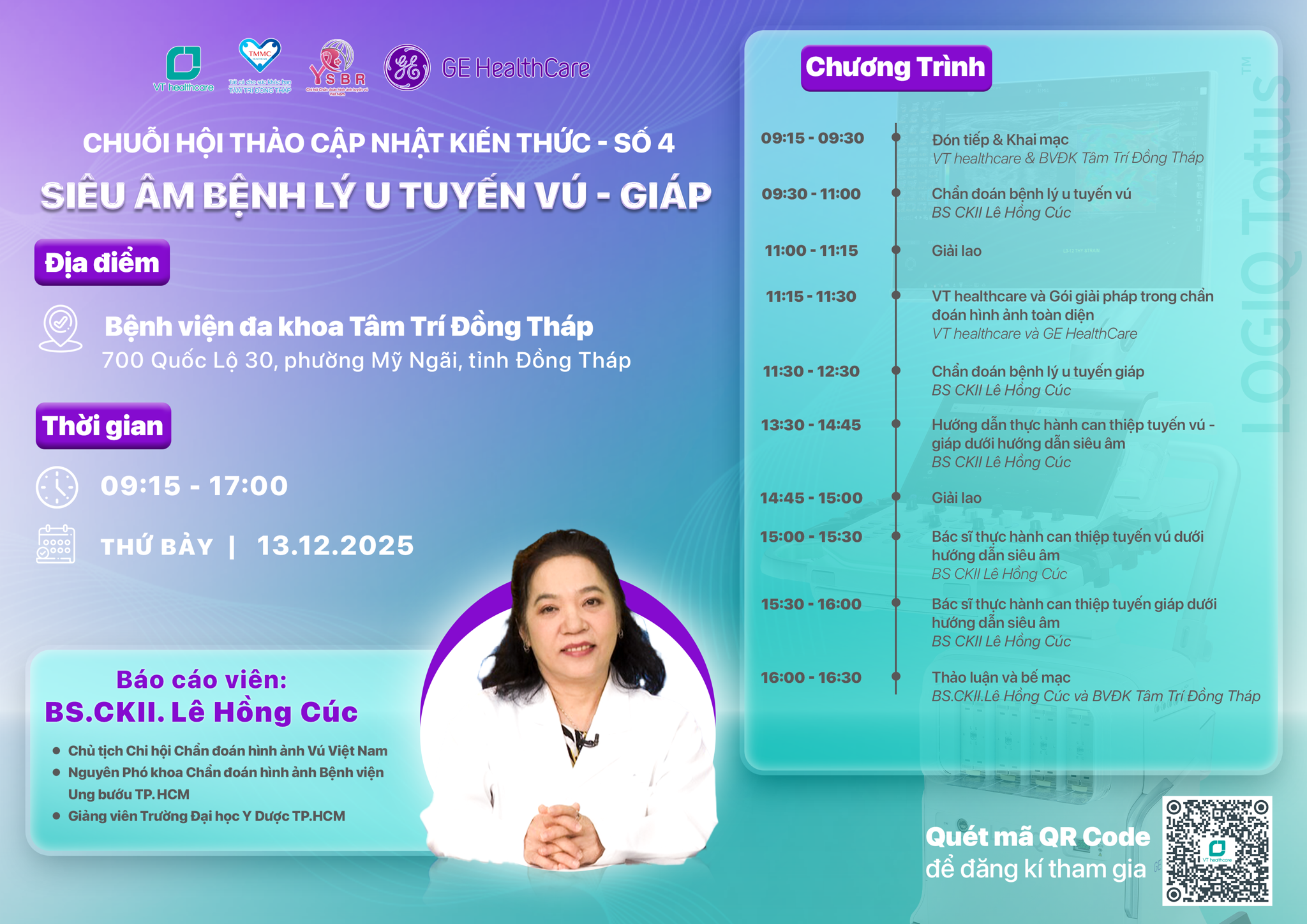 Nhằm tạo cơ hội cập nhật kiến thức và chia sẻ kinh nghiệm thực tiễn, VT healthcare phối hợp cùng GE HealthCare và Bệnh viện Đa khoa Tâm Trí Đồng Tháp trân trọng tổ chức Hội thảo chuyên đề: “Siêu âm Bệnh lý u tuyến vú – giáp” hứa hẹn mang đến nhiều giá trị chuyên môn thiết thực cho đội ngũ y tế.