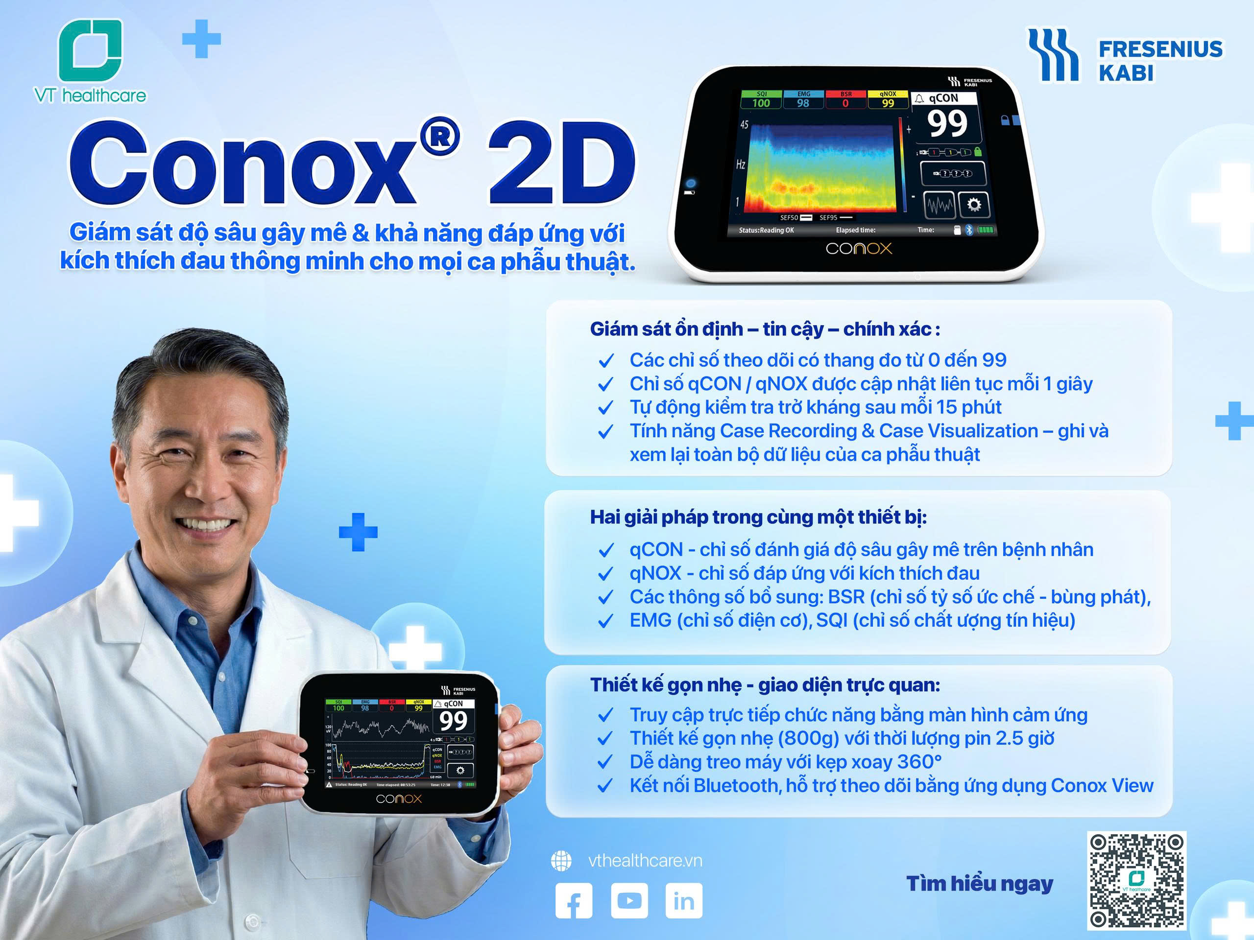 Như vậy, máy theo dõi độ sâu gây mê Conox 2D không chỉ là một thiết bị theo dõi, mà còn là công cụ hỗ trợ cho bác sĩ về các thông số quan trọng từ não bộ, phản ứng đau, tín hiệu cơ, chất lượng EEG. Điều này giúp nâng cao độ an toàn, giảm rủi ro, đồng thời tối ưu hóa thuốc và thời gian phục hồi cho bệnh nhân.