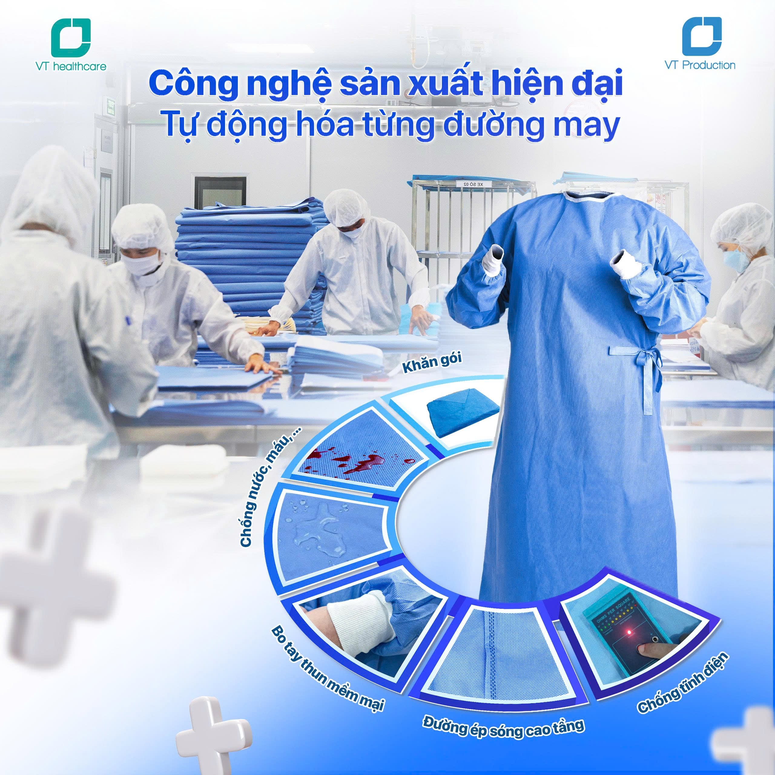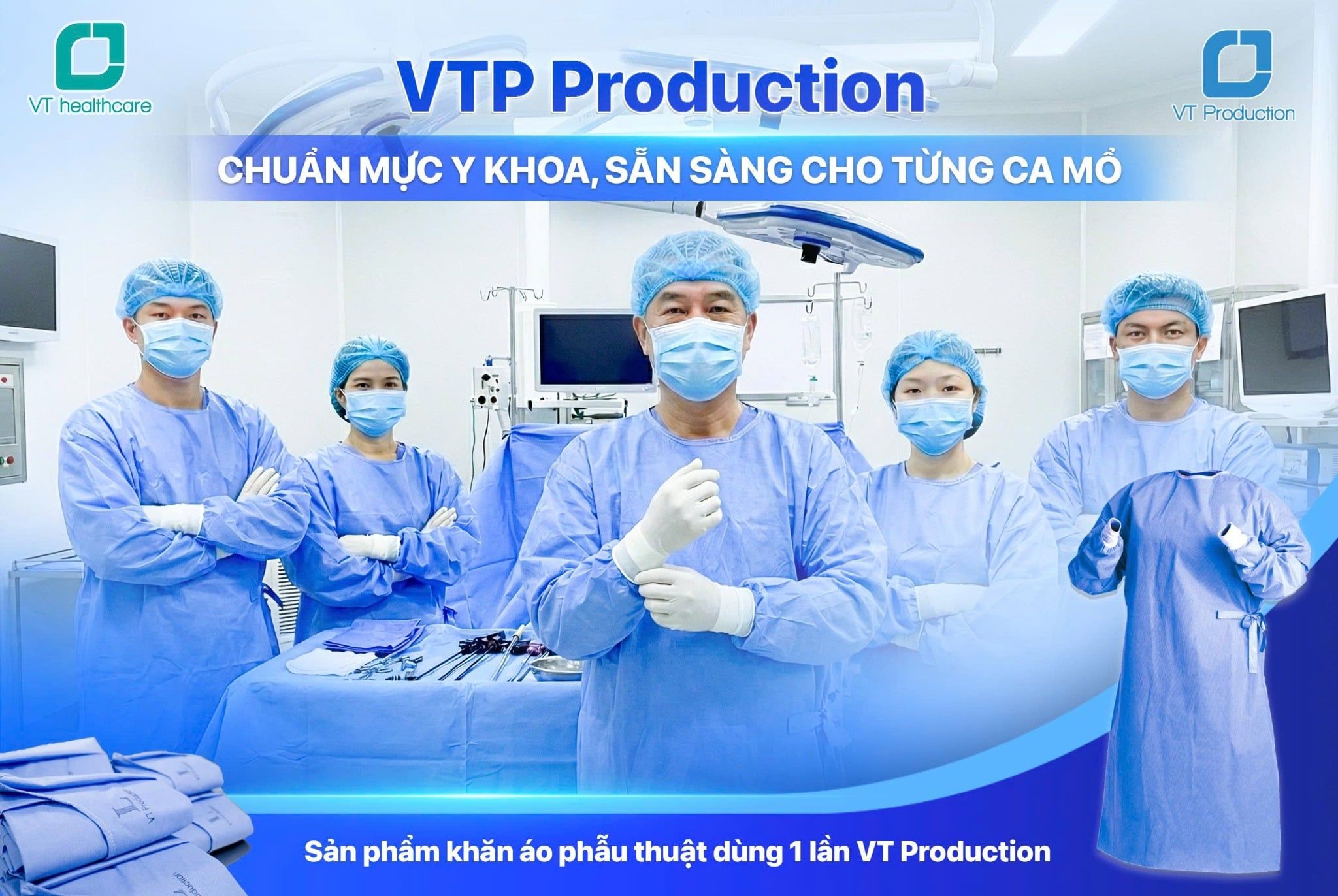 Trong mọi ca phẫu thuật, dù lớn hay nhỏ, sự an toàn luôn phải đặt lên hàng đầu. Một chiếc áo phẫu thuật, một bộ khăn che phủ tưởng chừng đơn giản, nhưng lại là lớp phòng vệ quan trọng giúp bảo vệ bệnh nhân và đội ngũ y tế khỏi nguy cơ nhiễm khuẩn. Chính vì thế, VT Production cho ra đời dòng sản phẩm Khăn – Áo phẫu thuật dùng một lần, được sản xuất từ quy trình khép kín, nghiêm ngặt đến chất lượng đạt chuẩn y khoa.